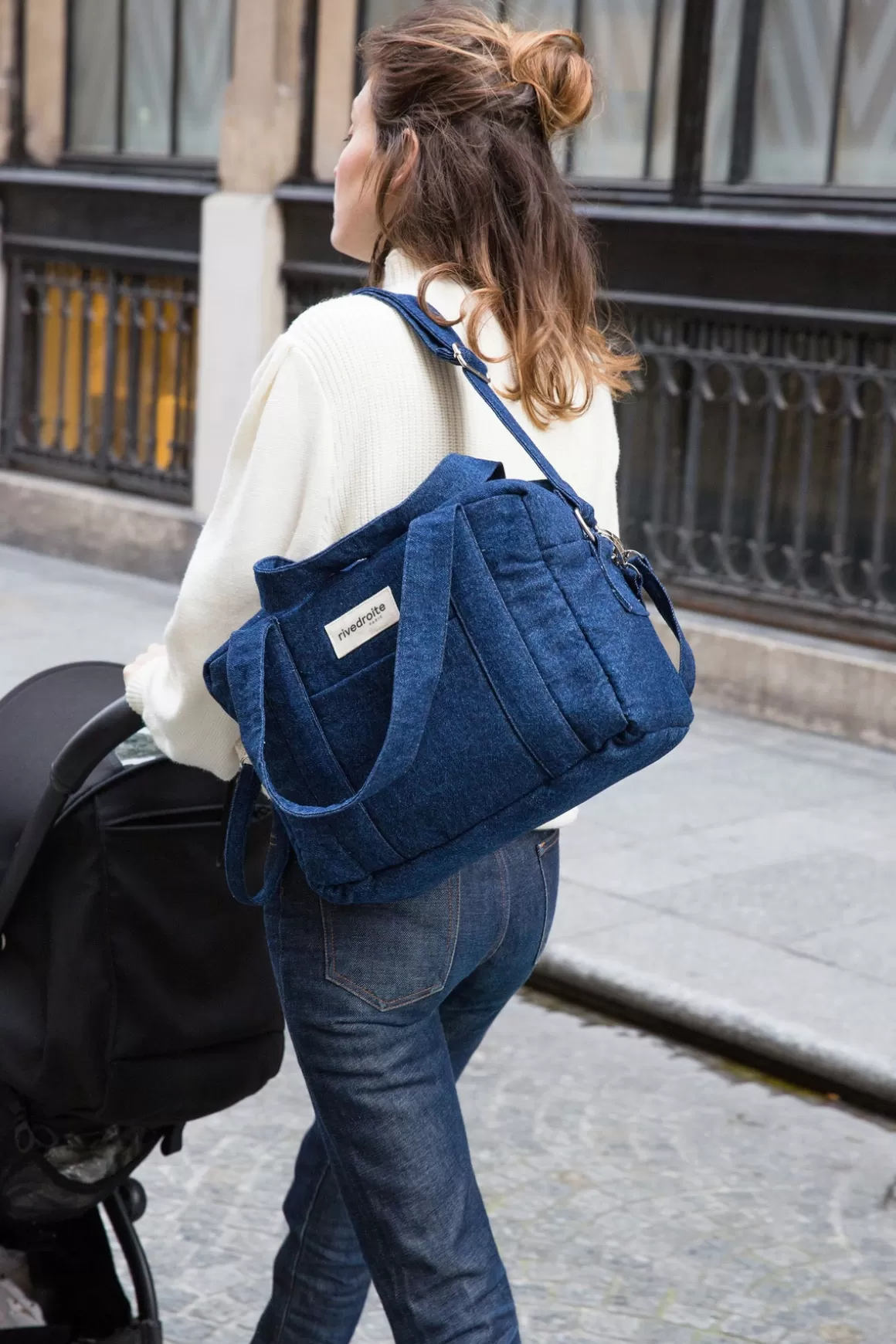 Smaller and more compact, Darcy raw denim mini version is the ideal changing bag for short daily trips with your baby, or for the minimalists who prefer to carry few things. Of course, it has all the advantages of a diaper bag: pocket for diapers, elasticated pocket for the bottle, removable stroller attachment system, adjustable shoulder strap and external patch pocket to keep your phone within reach.
