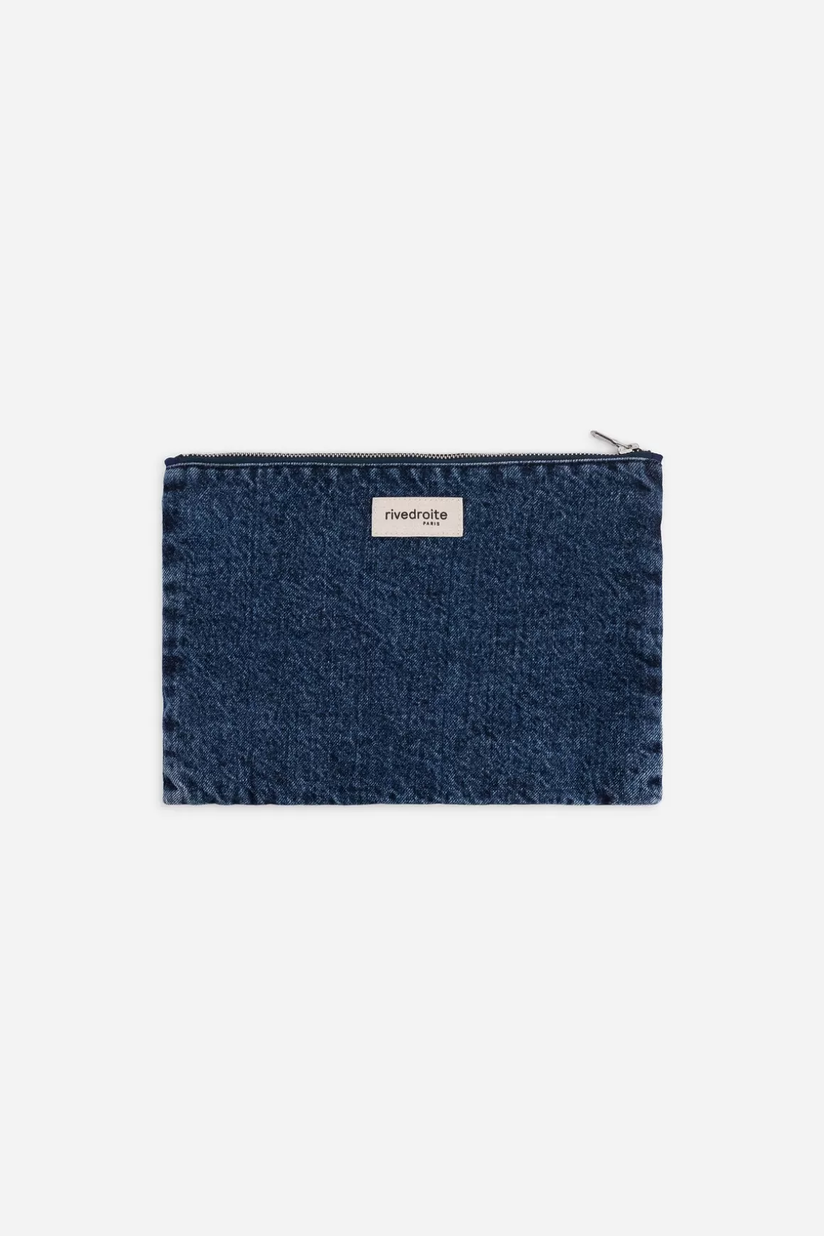 Made from distressed upcycled denim, which has been faded to reveal its beautiful asperities at the seams, and patina over time, like the jeans you love to wear every day, Barbette the clutch is your must-have this autumn. Whether it’s for storing your daily essentials – papers, hydro-alcohol gel, keys – or organizing your luggage when you travel – lingerie, swimwear – it’s also perfect for keeping your cables and other electronic accessories in order. Its versatility and vintage charm are sure to win you over.