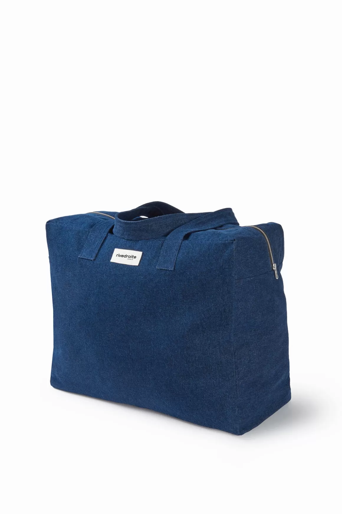 Our big Elzevir bag in raw denim is the perfect size for a long weekend. It holds three complete outfits, plus two pairs of shoes and your toiletry bag. It's also perfect for a short seaside getaway: Use it to carry your beach towel, shorts, T-shirts, swimsuits, sandals and a good book.