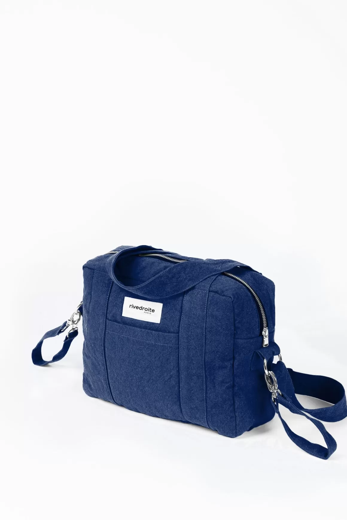 Smaller and more compact, Darcy midnight blue mini version is the ideal changing bag for short daily trips with your baby, or for the minimalists who prefer to carry few things. Of course, it has all the advantages of a diaper bag: pocket for diapers, elasticated pocket for the bottle, removable stroller attachment system, adjustable shoulder strap and external patch pocket to keep your phone within reach.