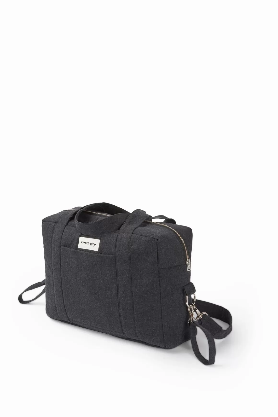 Darcy, the Anti Diaper Bag black is a diaper bag that doesn't look like one. You'll love its timeless style and super-practical features, including a large removable pouch, several pockets (a front patch pocket for your phone, an inside pocket for diapers, and an elasticized pocket for a bottle), a loop that slips over your suitcase, and ties for attaching it to a variety of stroller models. The wide, adjustable strap lets you carry it over the shoulder or messenger style. You'll take it everywhere, with or without baby.