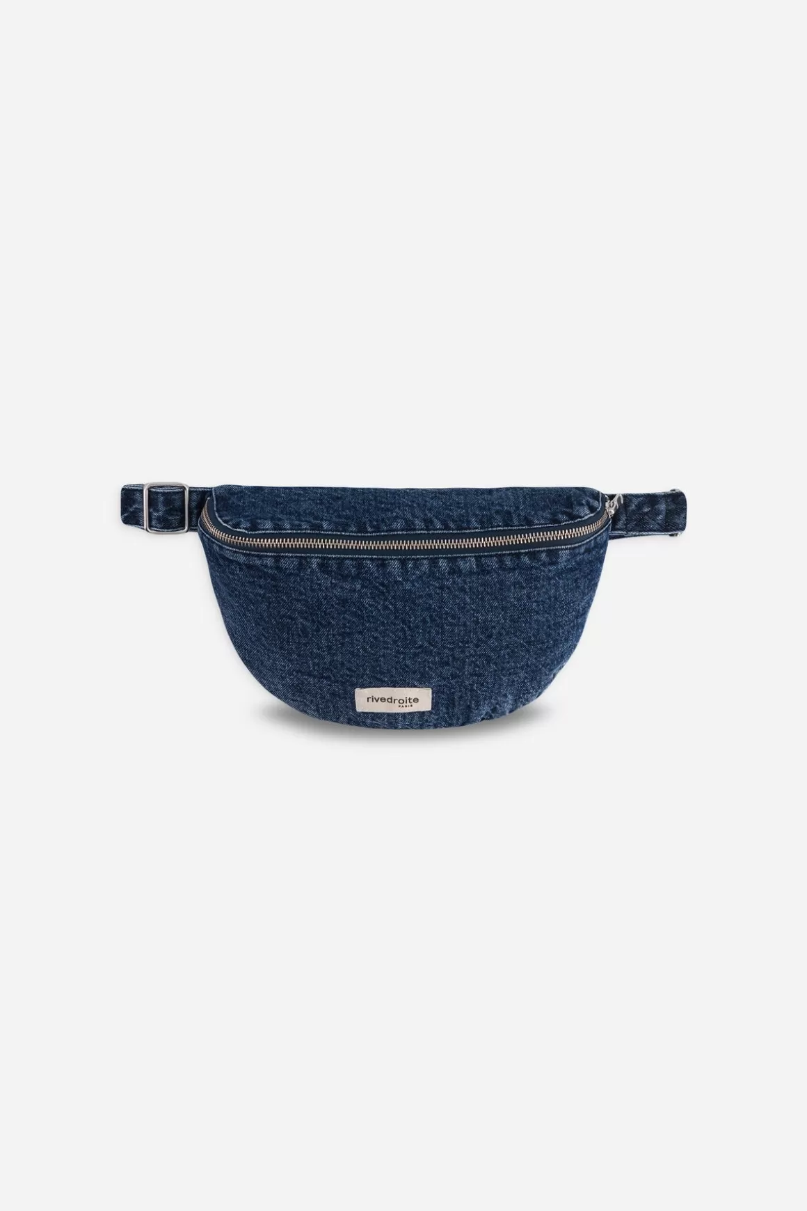 Discover Custine, the iconic Rivedroite fanny pack in distressed upcycled denim, which has been washed to reveal its beautiful asperities at the seams, and patina over time, just like the jeans you love to wear every day.