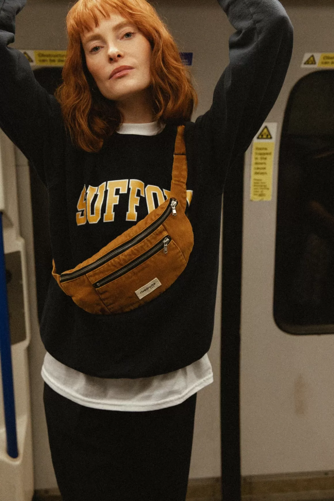 Orsel, Rivedroite’s latest bum bag, is now available in the new weathered colors of the Camden collection. You’ll love its Brown Leaf color, a cheerful vintage brown that reveals the rough edges of the upcycled denim fabric at the seams, and will develop a patina over time, just like the jeans you love to wear every day.